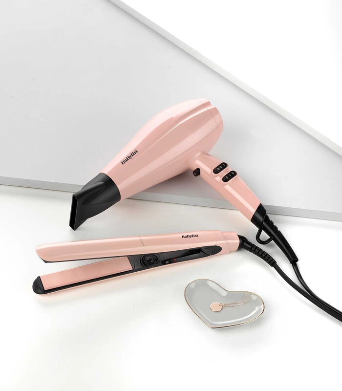 De mooie, lichtgewicht Rose Blush 2200 haardroger van BaByliss heeft een vermogen van 2200 W en een geavanceerde luchtstroom voor supersnel drogen. Met ionische anti–frizz–functie en titanium–keramische technologie voor een glad en steil, salonwaardig resultaat. Onderdeel van de Rose Blush–collectie.
